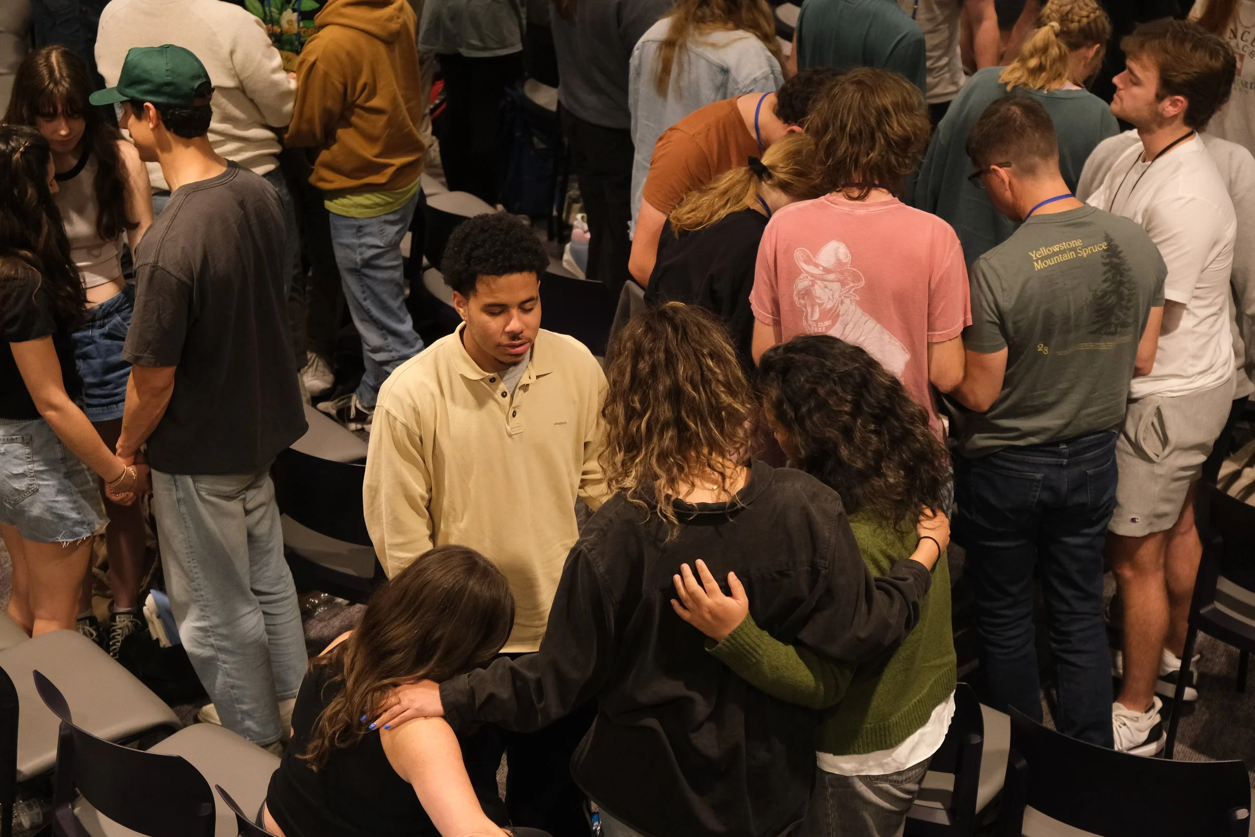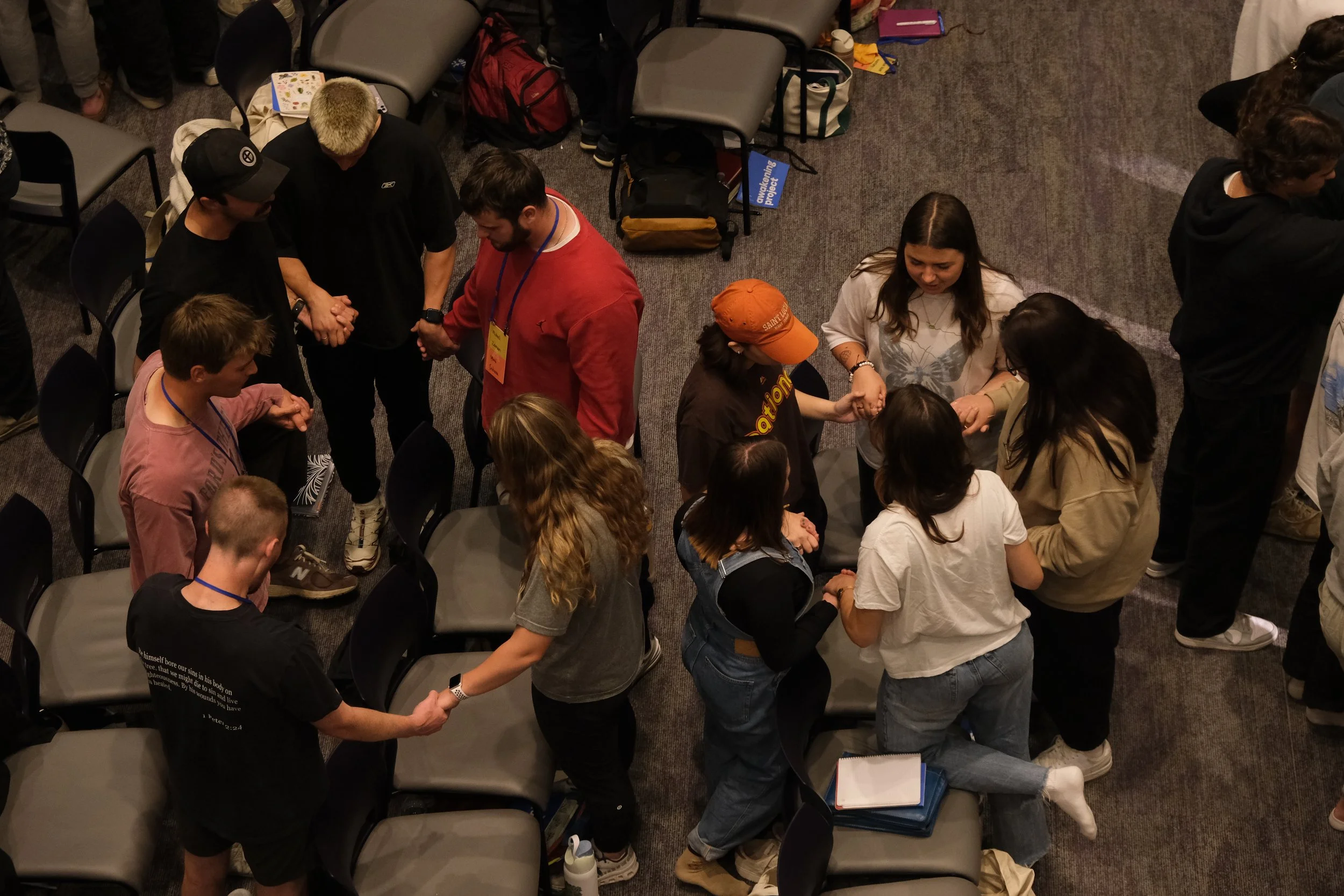 You gather in person — in a living room, dorm, or church space — and our team joins by Zoom to walk you through a simple, Spirit-led prayer set.